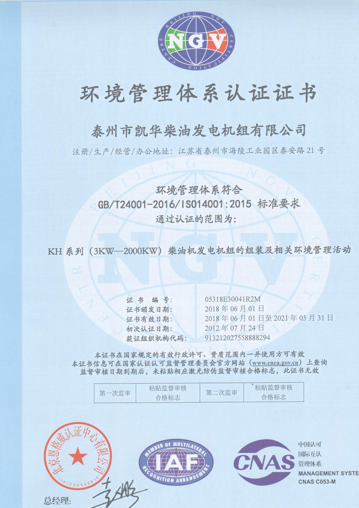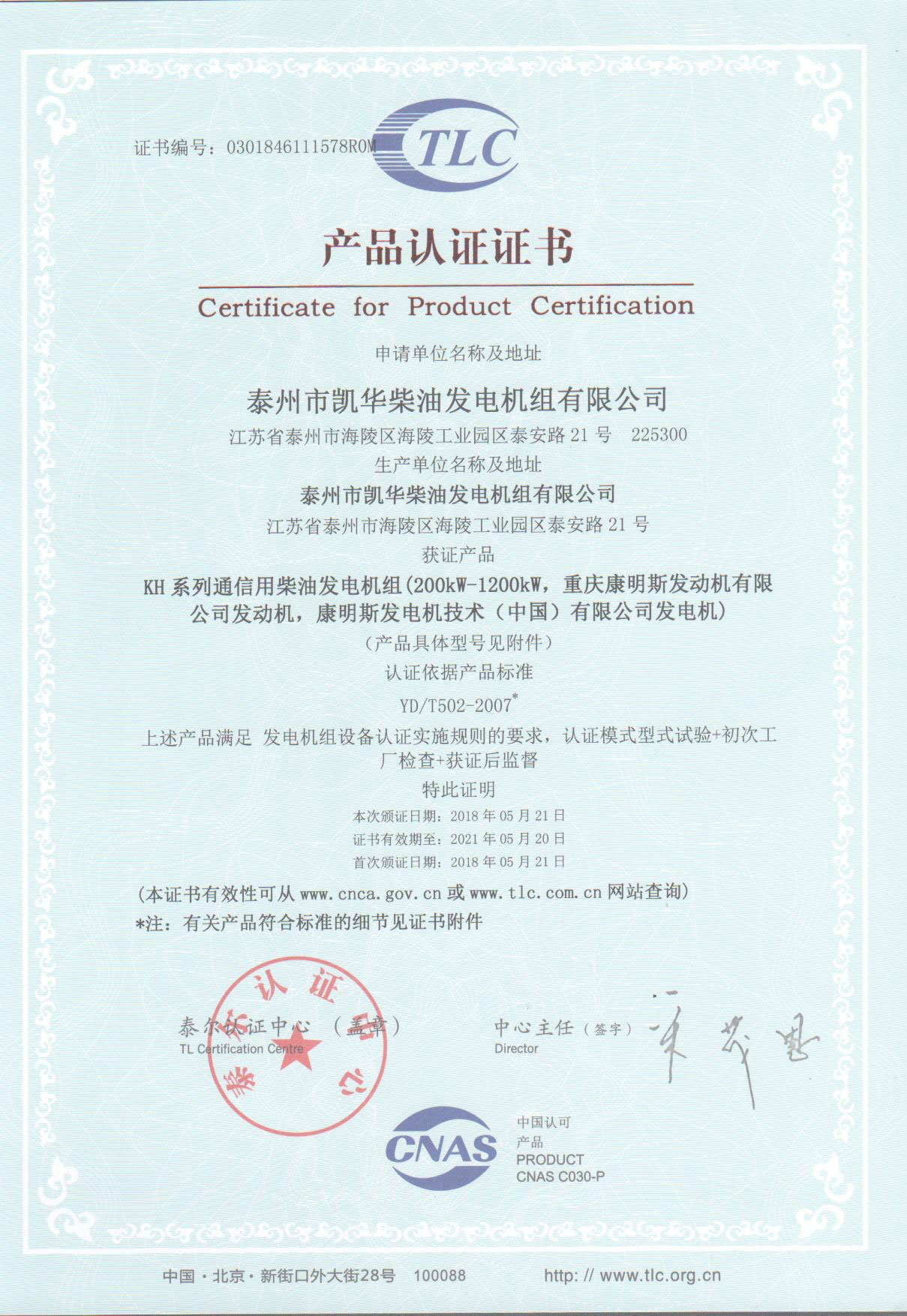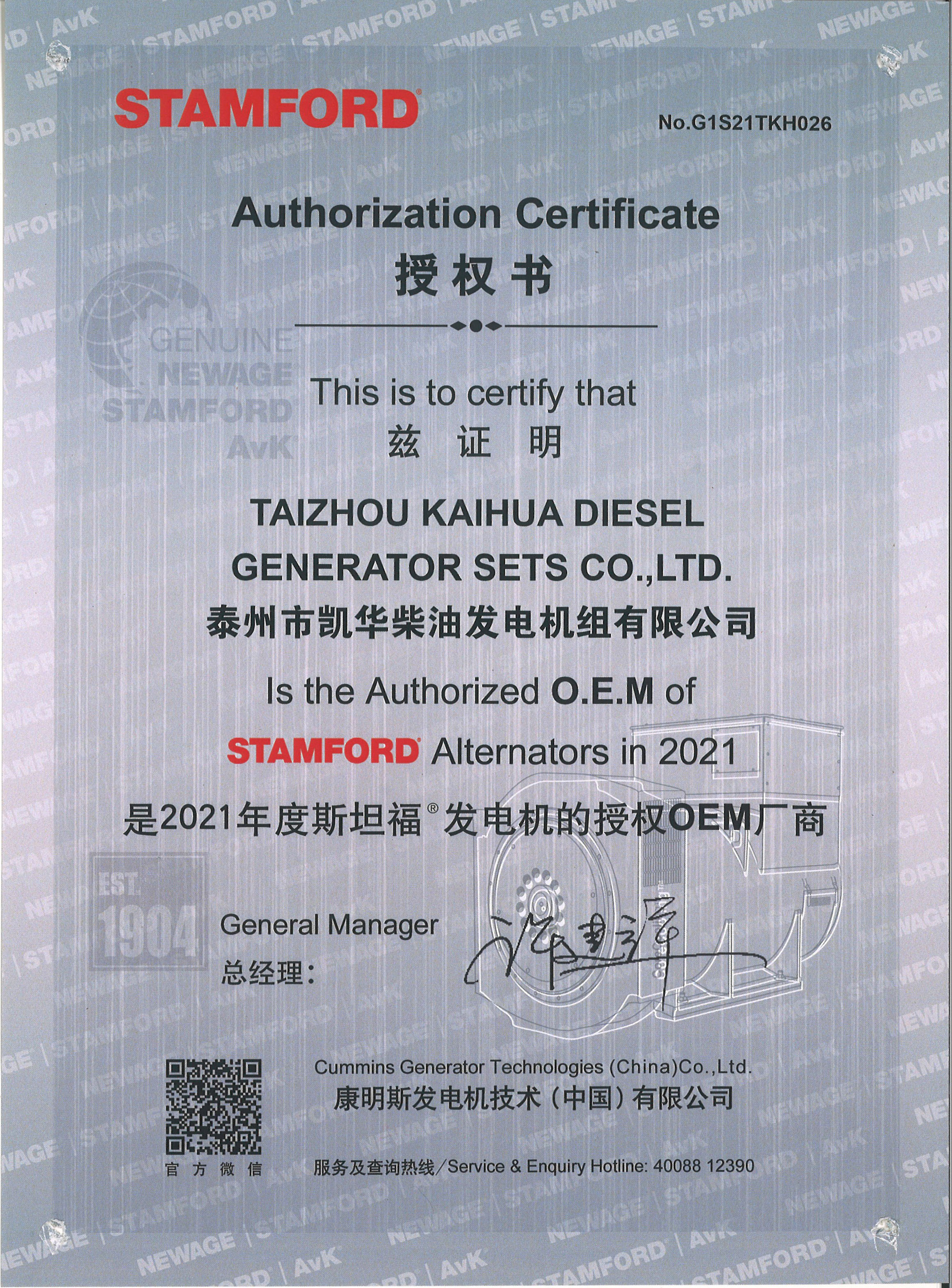 發(fā)電機(jī)組廠家凱華公司已先后通過ISO9001質(zhì)量認(rèn)證、泰爾認(rèn)證、ISO14001-2001環(huán)境管理體系認(rèn)證、GB/T28001-2001職業(yè)健康安全管理體系認(rèn)證,歐盟CE認(rèn)證、SGS認(rèn)證等。