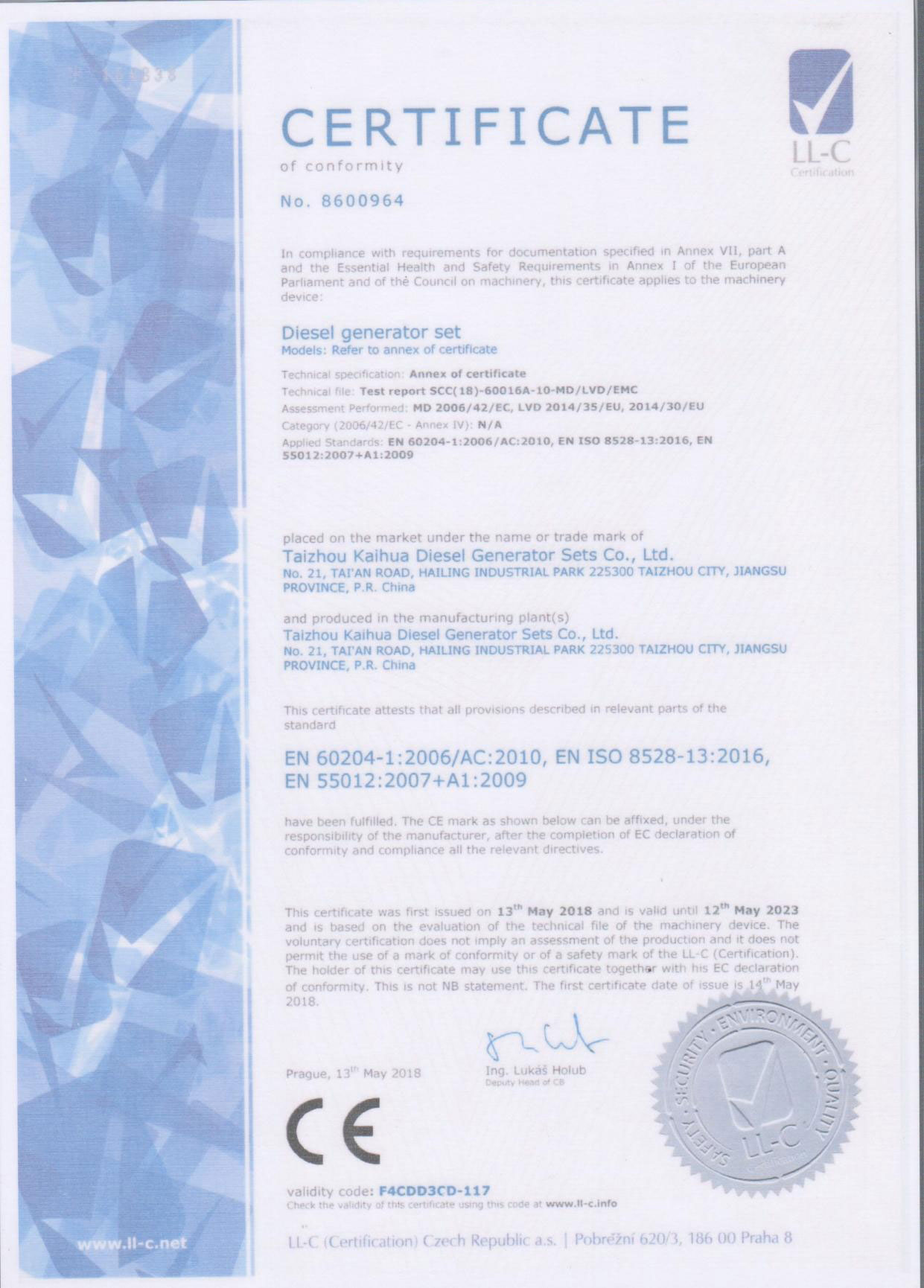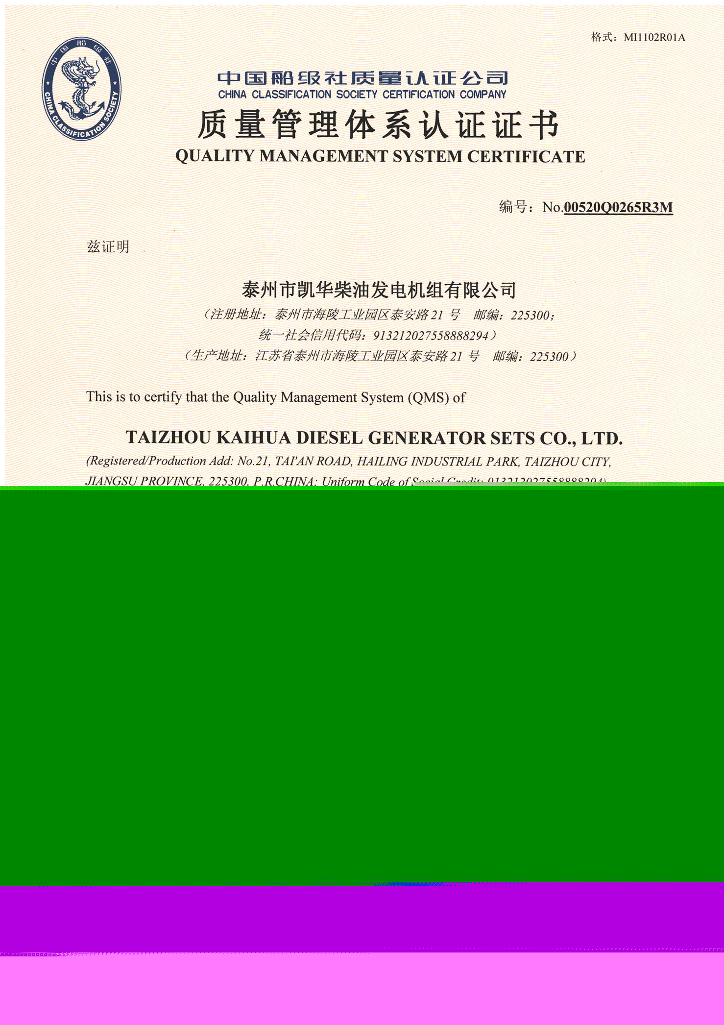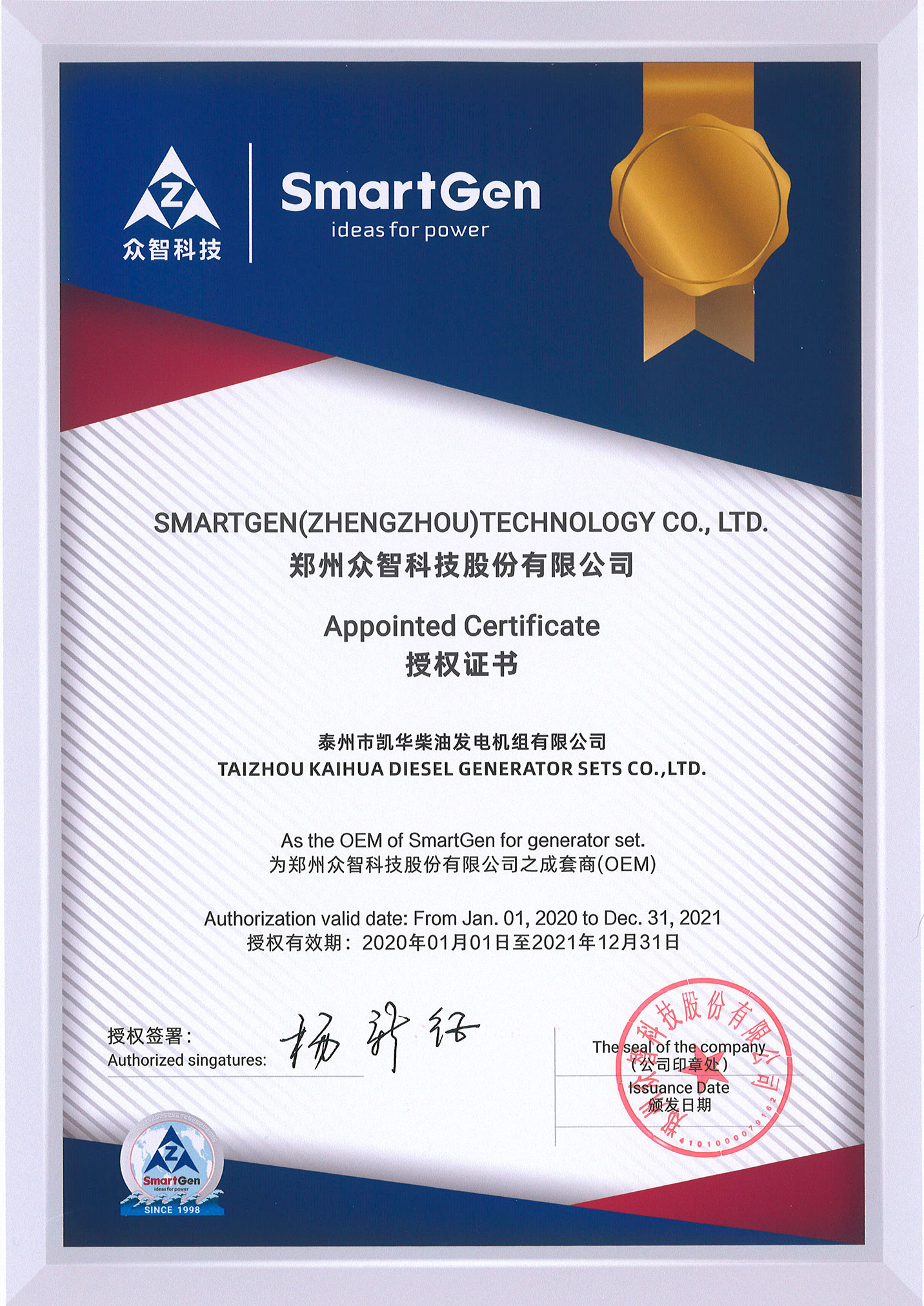 發(fā)電機(jī)組廠家凱華公司已先后通過ISO9001質(zhì)量認(rèn)證、泰爾認(rèn)證、ISO14001-2001環(huán)境管理體系認(rèn)證、GB/T28001-2001職業(yè)健康安全管理體系認(rèn)證,歐盟CE認(rèn)證、SGS認(rèn)證等。